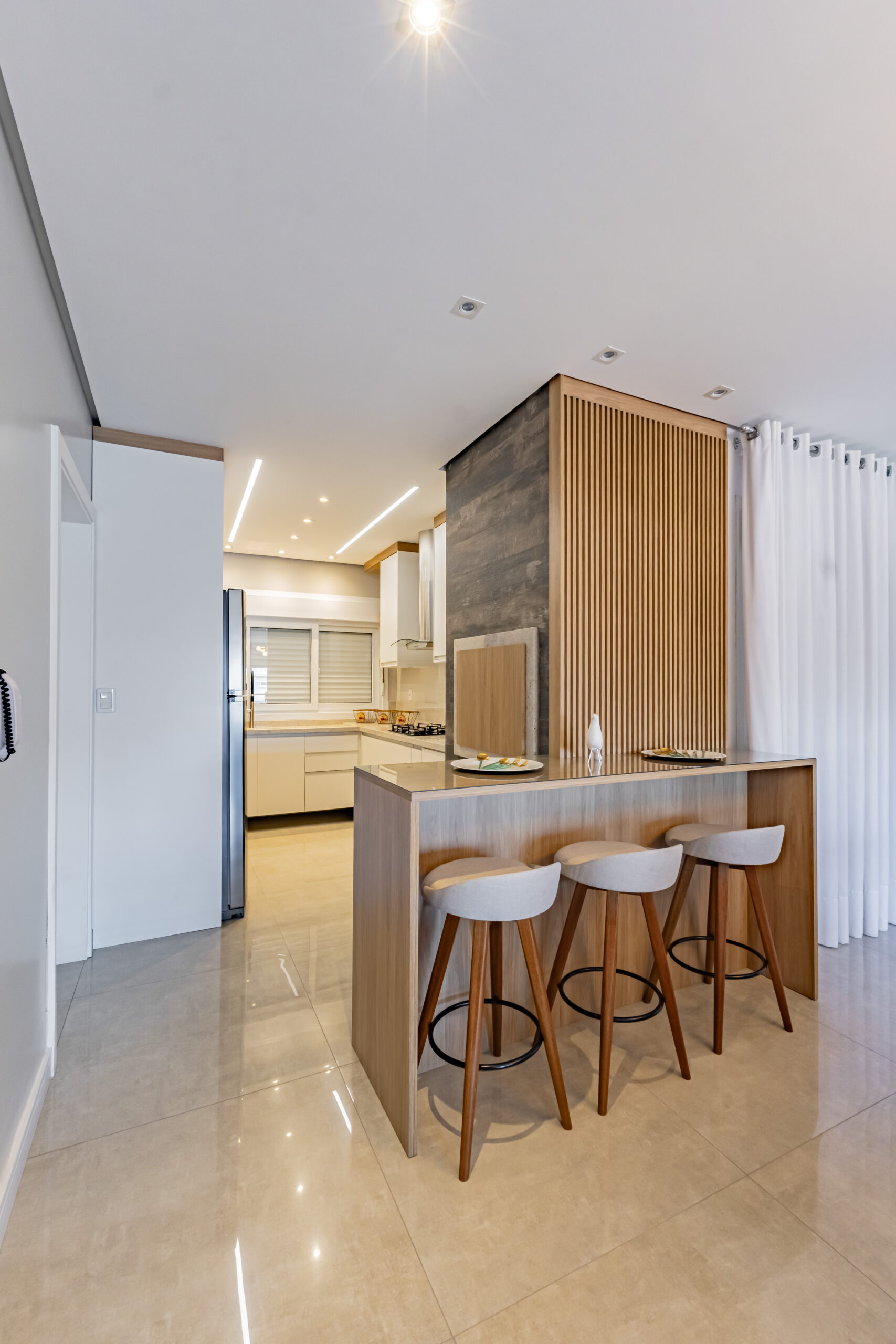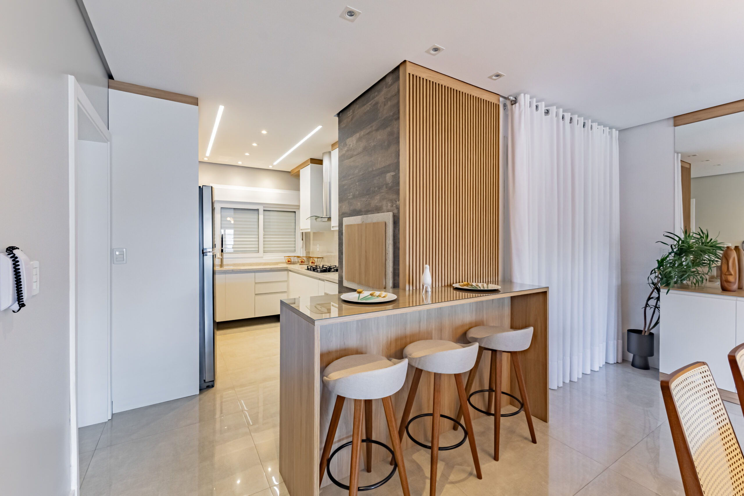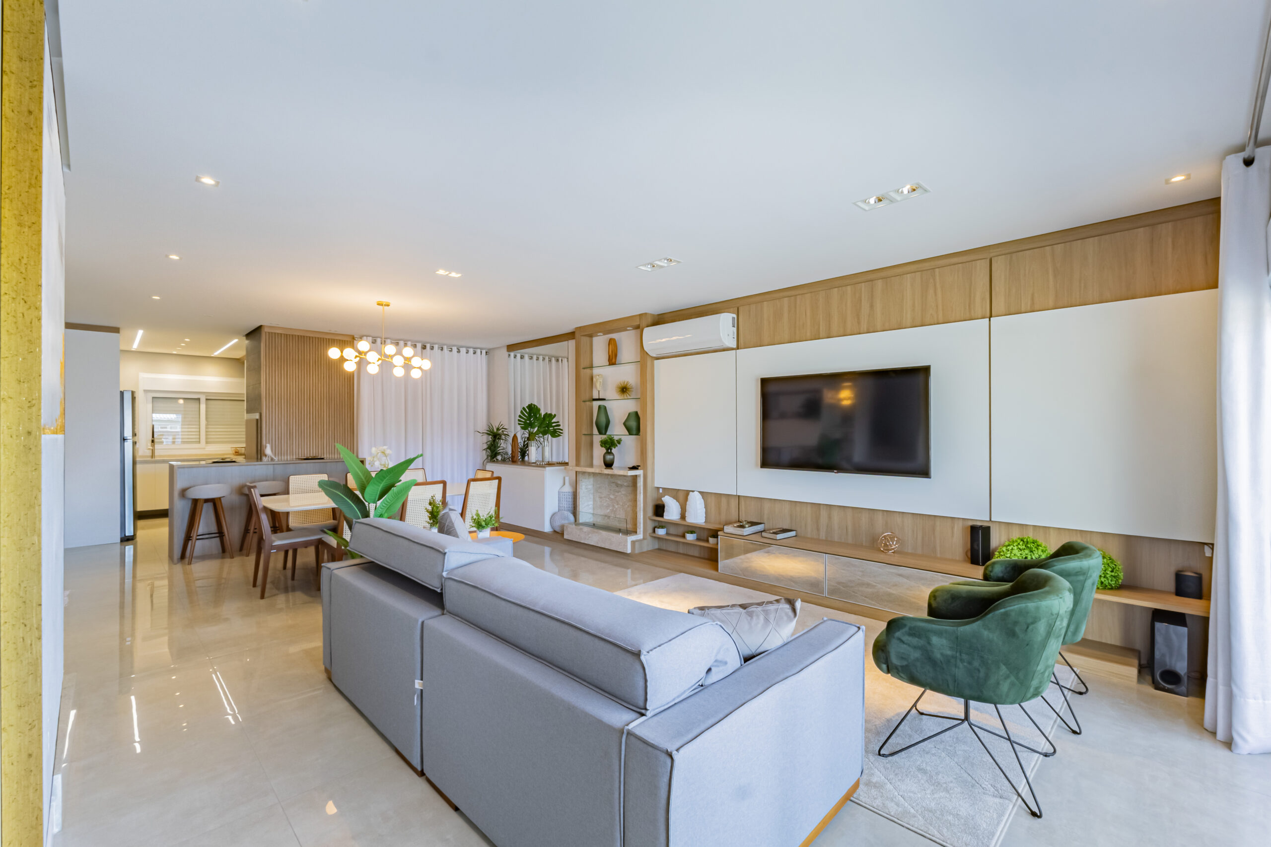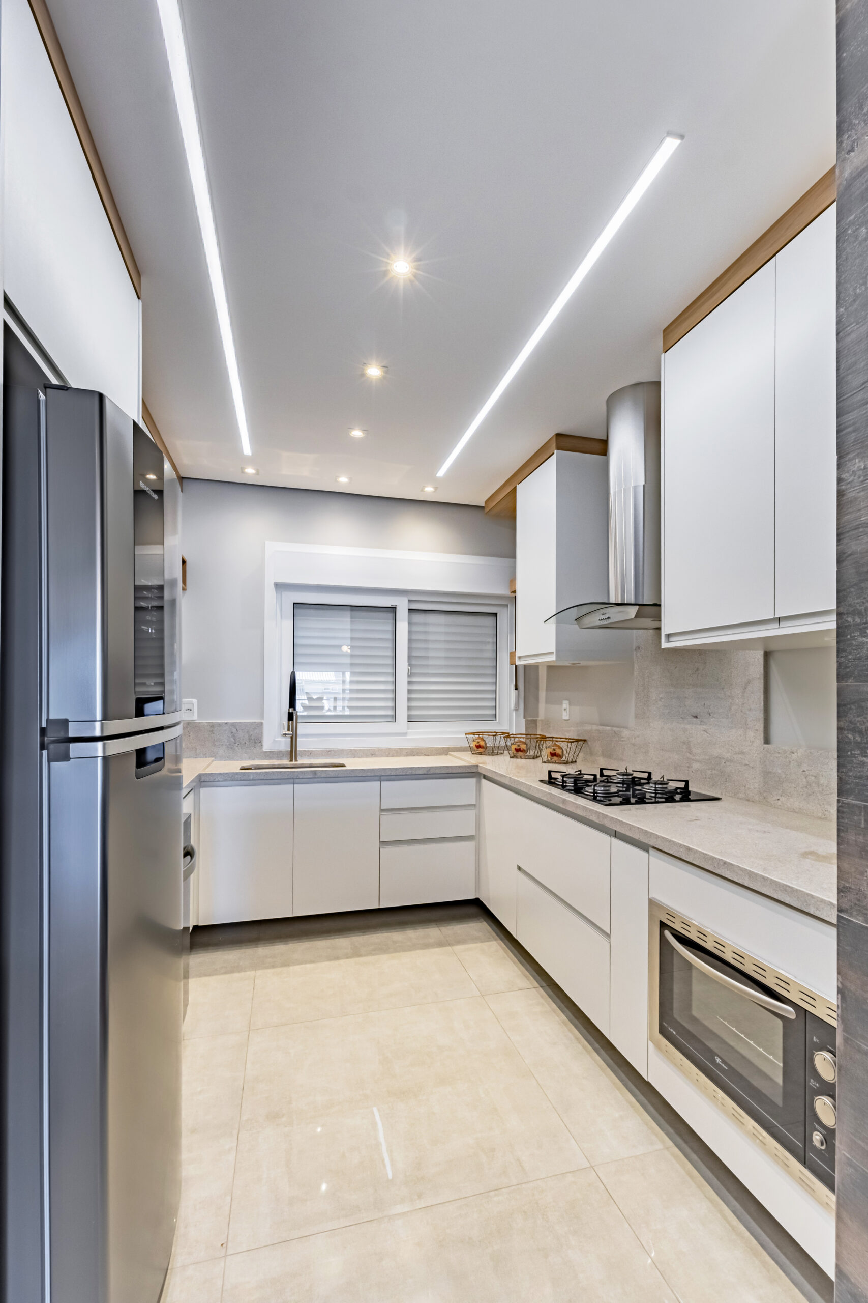 Sobrado mobiliado com arquitetura contemporânea, possuí 212,00m² de área construída e 199,50m² de área de terreno, garagem coberta para 2 automóveis um ao lado do outro (se contarmos o recuo frontal cabem 4 automóveis dentro da edificação), ampla área envidraçada garantindo uma iluminação e ventilação natural, frente com orientação solar voltada para leste e norte, jardim com belíssimo paisagismo e sistema de irrigação automátizado, escadas internas e externa em granito Itaúnas com acabamento em 45º, guarda-corpo em vidro e aço inoxidável, esquadrias em PVC com persianas, porcelanato polido 90cm x 90cm e demais cerâmicas da Portinari, água quente/fria, teto rebaixado em gesso e molduras de acabamento em toda a edificação, piso laminado em toda área íntima, rodapés em pvc branco, espera para gás central, acabamento com massa corrida. Andar Térreo: Garagem coberta para dois automóveis, central de gás, depósito, escada de acesso ao 2º pavimento; Segundo pavimento: Hall, lavabo, sala de estar com sacada, sala de jantar, área de serviço, cozinha em conceito aberto; acesso ao pátio, área externa gourmet com churrasqueira; Terceiro pavimento: Suíte com sacada, 2 dormitórios, sendo um deles com terraço, banheiro social