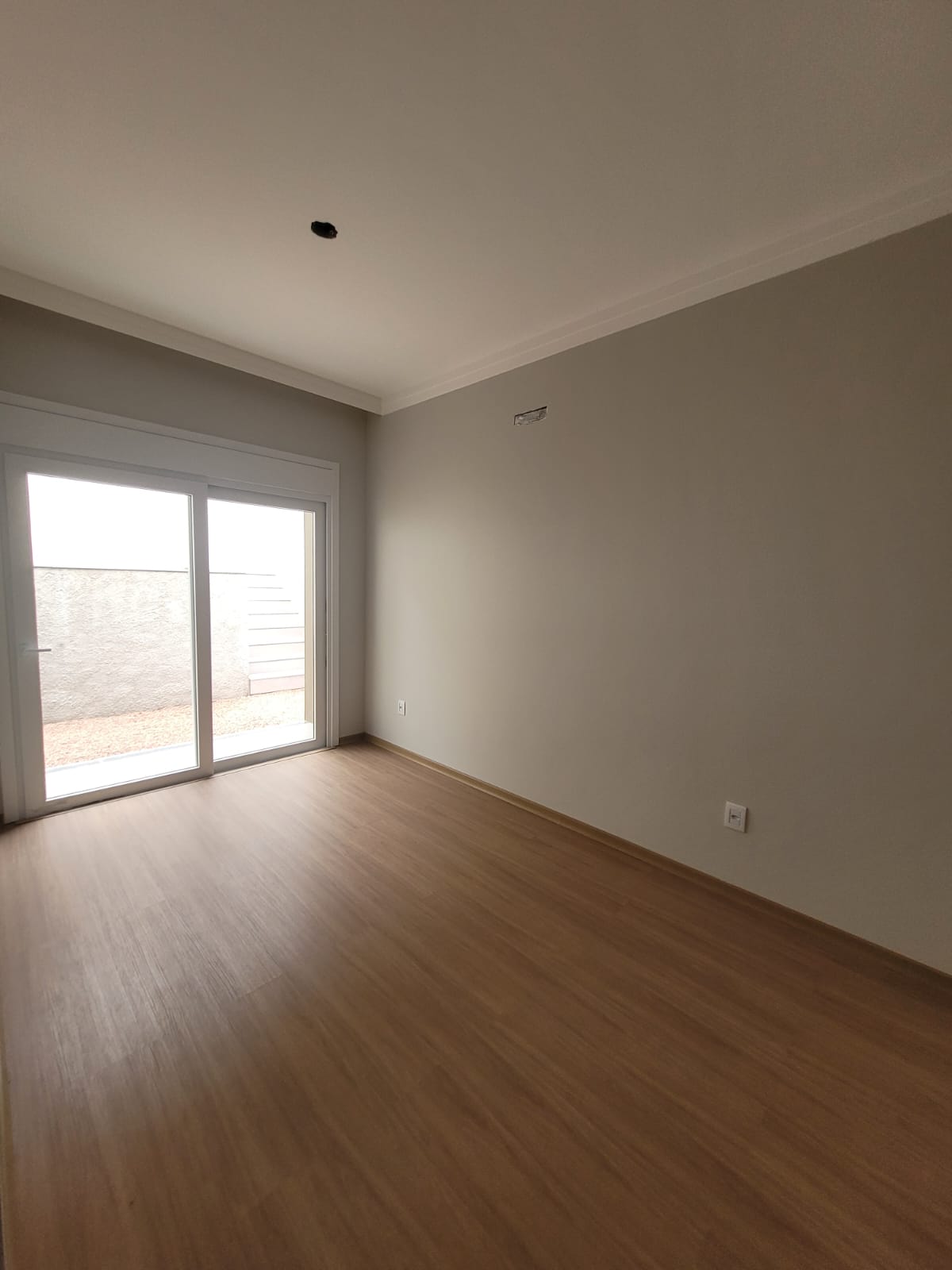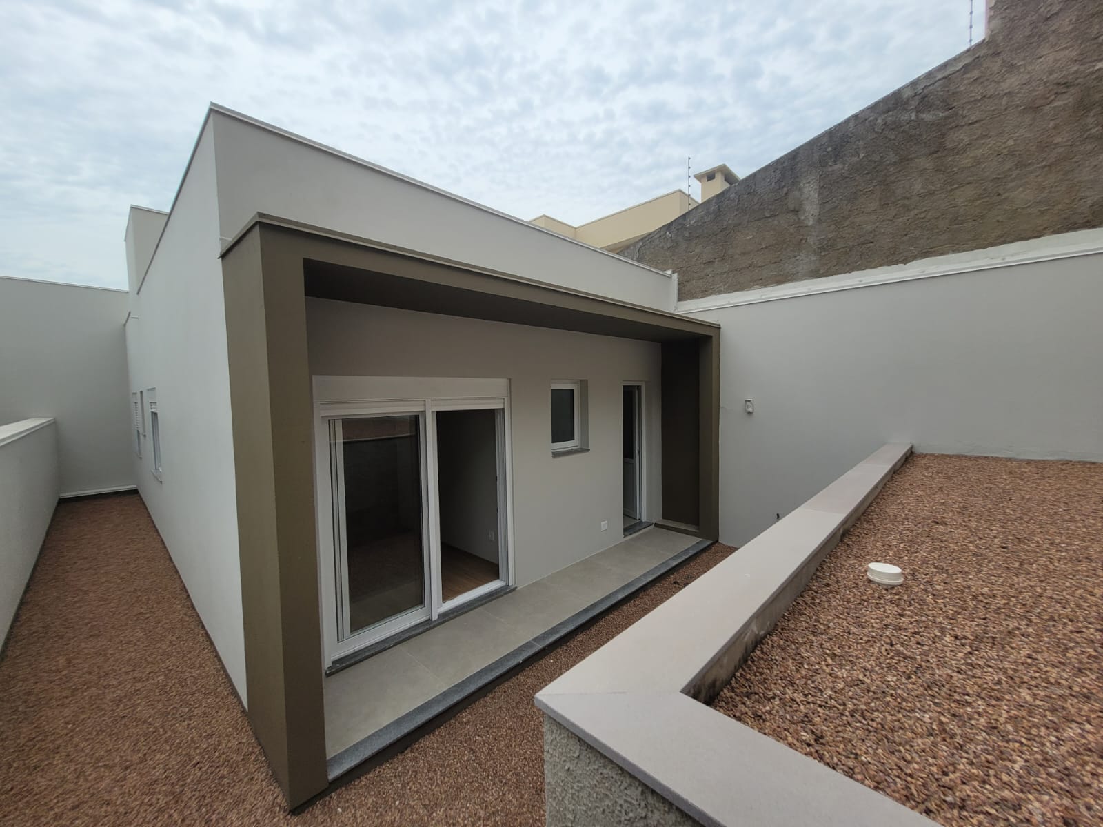Cada uma das duas unidades possui 190,65m² de área construída e 252,96 m² de área de terreno, garagem descoberta para 2 automóveis um ao lado do outro, guarda-corpo em vidro e aço inoxidável, esquadrias em PVC com persianas, porcelanato, água quente e fria, forro de gesso, piso laminado em toda a área íntima, rodapés em pvc branco, espera para gás central e acabamento das paredes com massa corrida. Pavimento Térreo: Garagem descoberta para dois automóveis, sala de estar, sala de jantar, cozinha, lavanderia, lavabo, churrasqueira, jardim de inverno e escada de acesso ao segundo pavimento. Segundo Pavimento: dois dormitórios com suíte americana e um dormitório suite com closet e sacada.